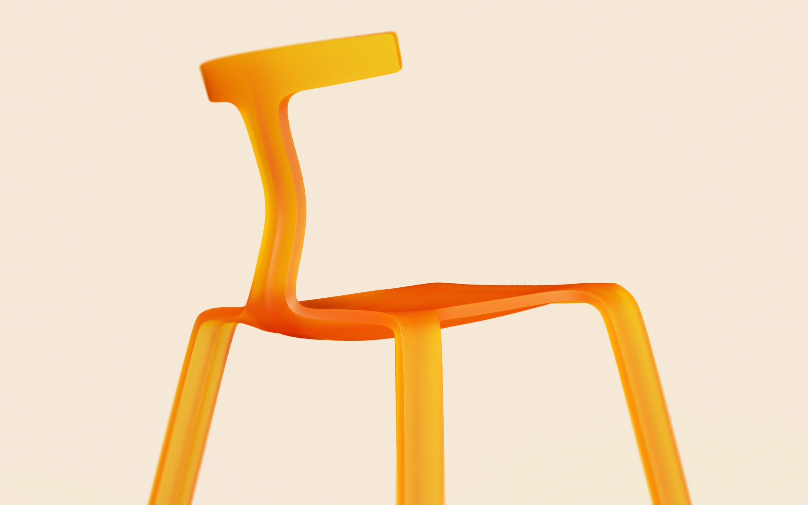 The Whale Chair explores the idea of a mono-material piece of furniture that is both expressive and sustainable. Made entirely from renewable polycarbonate, it uses compression molding, a low-energy process that consolidates recycled PC flakes or pellets into a continuous shell. By integrating ribs and flowing transitions into the geometry, the chair achieves structural strength with reduced material mass, lowering both weight and embodied carbon. The result is a single-material object that remains recyclable at end of life, uniting clarity of form with clarity of process.